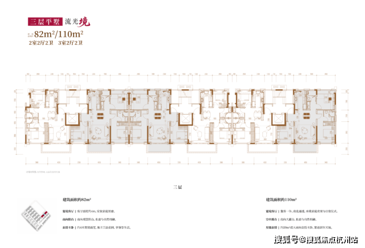 建面约82㎡2房2厅2卫/110㎡3房2厅2卫(三层上叠):