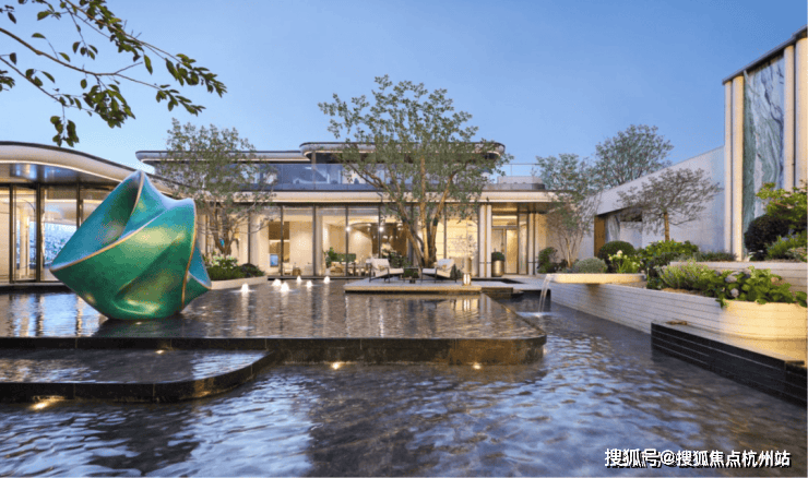 公建化的立面,四面铝板搭配大面积玻璃,阳台统一封包,底层的浅色天然石材还被打磨出弧线,脱去厚重外壳,轻盈洒脱。项目西侧直线约800米就是钱塘江,春来晴翠也在园区里编织了一幅山水画卷。