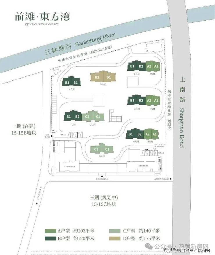浦东三林永泰三里城二期定名「前滩·东方湾」该项目容积率2.0,拟建16-17F高层,可售商品房364户,保障房48户,自持房136户。