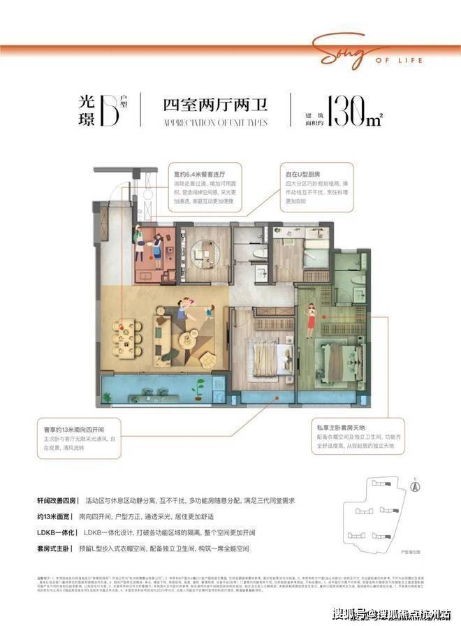 约106㎡户型点评:双联阳台约6.7米面宽,加设L型俯景面,满足晾晒、赏景、采光三重需求,LDKB一体化设计,打破各功能区域的隔离,整个空间更加开阔,开放式厨房U型厨房,封闭敞开随心切换,高效台面设计,操作动线更加合理!