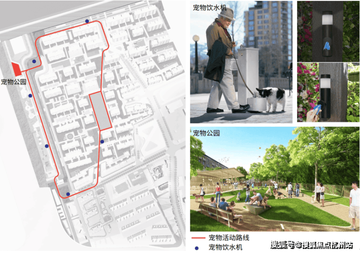宠物活动路线:社区为拥有宠物的家庭设置了专用运动路线、运动场地及饮水设施,享受便利的同时尽可能做到不打扰其他人,为文明养宠物提供硬件条件。