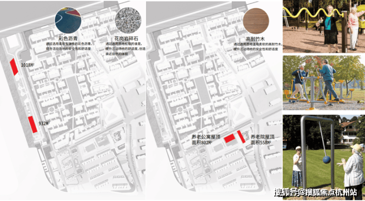 红线范围内室外舞蹈、天安1号二期售楼处电话:400-998-9694 武术广场等面积为2498㎡,可作为老年人室外活动场地。社区红线范围为主要分布在养老公寓和养老院屋顶和室外,该部分面积为1360㎡;市政绿化带中也设置了老年人活动场地,共计1950㎡。
