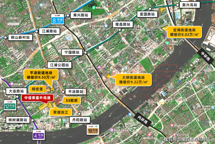 而相比于定海、大桥,平凉路作为杨浦最好的街道,坐拥内环滨江的优势,显然更具价值!