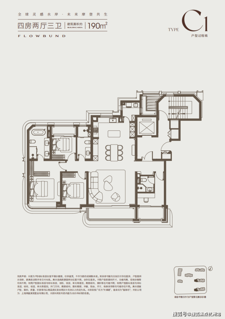 建面约190㎡四房,约3.15米的层高,塑造出极具立体感的纵向空间;