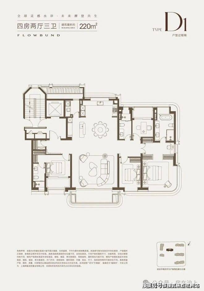 建面约220㎡4房2厅3卫户型