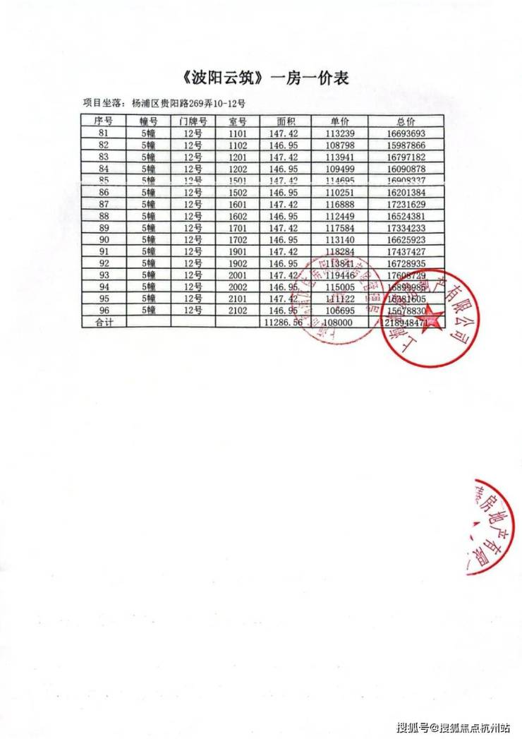 项目加推房源一房一价表▼