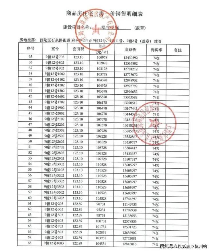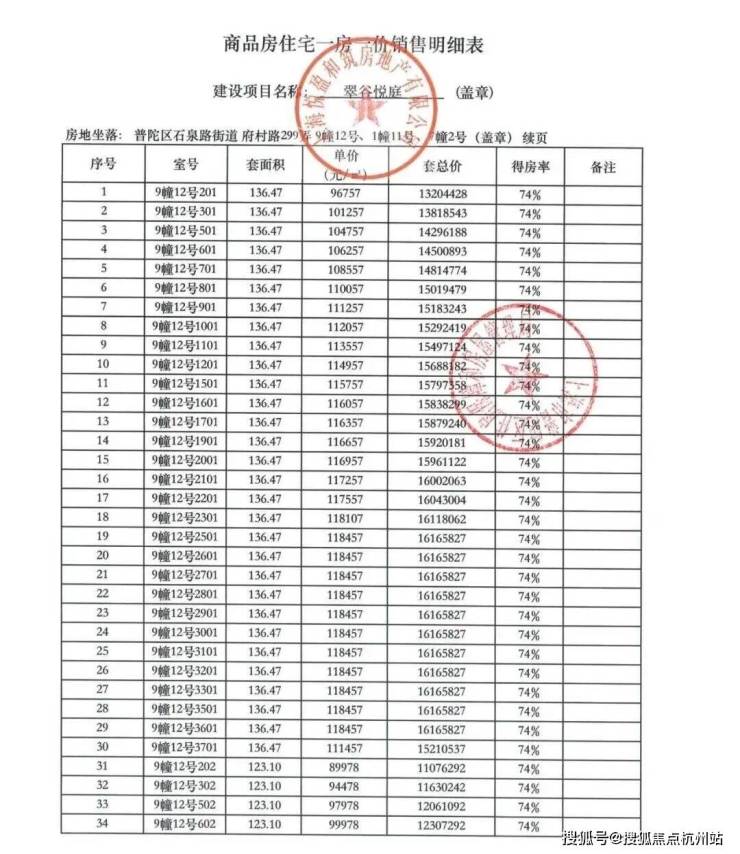 附一房一价表: