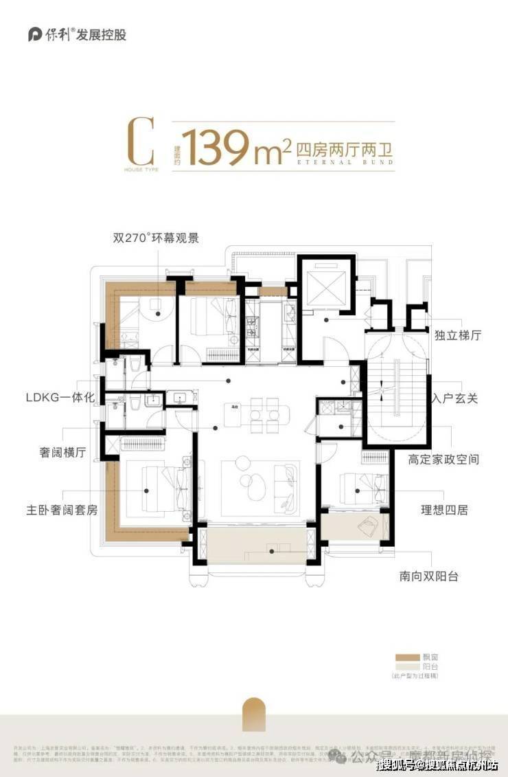 但事实上,保利外滩曜建面约130㎡的实际使用率做到了约94%,双阳台+双约270°视野+一梯一户独立电梯厅+多飘窗。