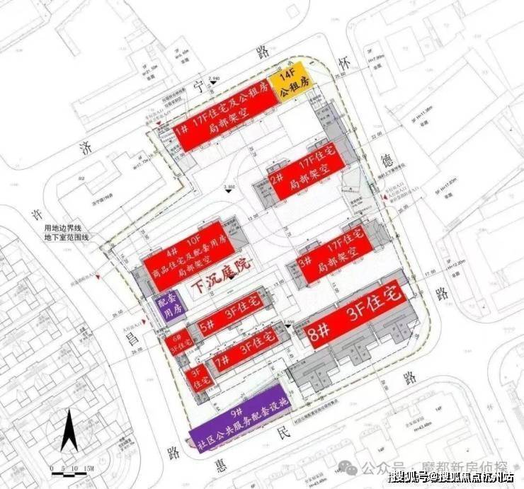 社区内部计划设置下沉式庭院、景观构架等设施,并全面实现人车分流。