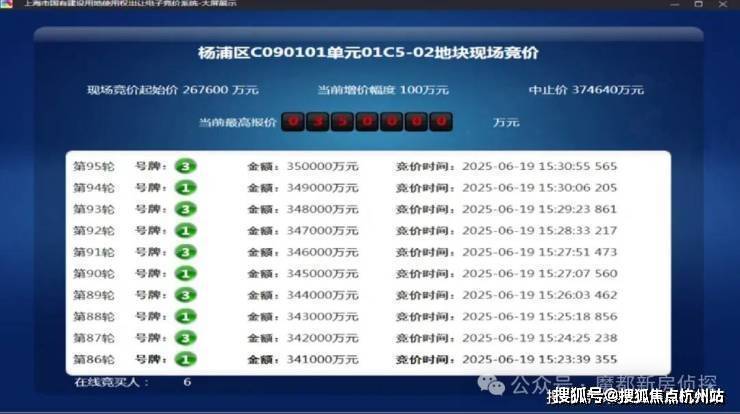 6月19日,2025年五批次土拍,保利发展经过95轮竞价摘得杨浦东外滩01C5-02地块(即保利外滩曜) ,成交总价350000万元,楼板价95530元/㎡,溢价率30.79%。保利外滩曜售楼处电话:400-998-9694