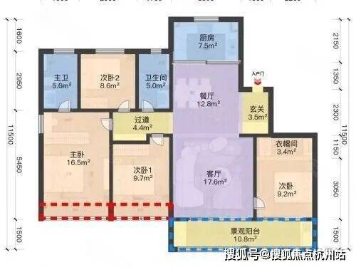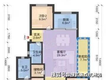 :边套户型,270° 采光,餐客一体连阳台,北向多功能房,四口之家舒适之选。