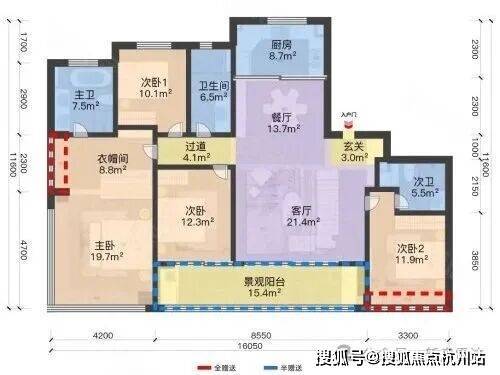 :阔绰四房,四开间朝南,横厅设计,动静分区,主卧独立衣帽间,改善一步到位。