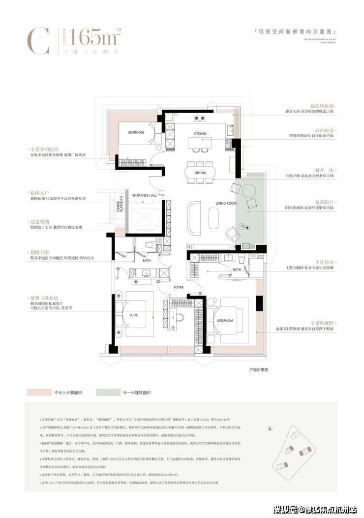 约165㎡户型 超越行业常规,提供了 空间、皮肤、功能、艺术化四大定制系统。