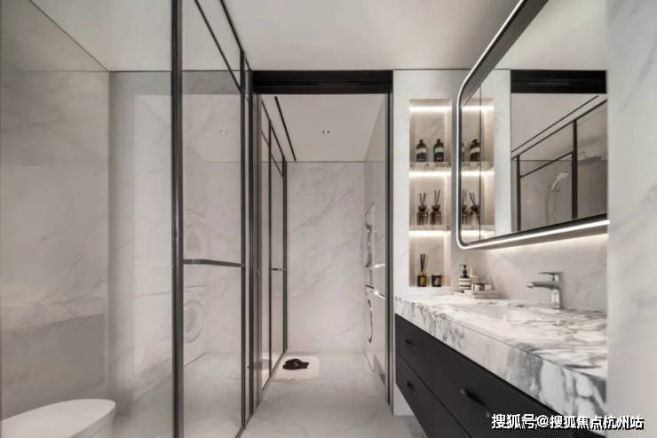 公卫打造独特的四分离系统, 实现独立洗漱台、卫生间、淋浴间、洗衣区互不打扰,将酒店化体验引入住宅。