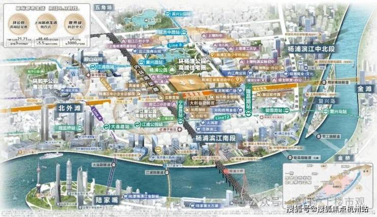 2、北横通道:继延安路高架后,上海第二条东西向财富积聚中轴线,平行于江河流向,串联虹桥-长风-苏河湾-北外滩-杨浦滨江等上海都心位置;