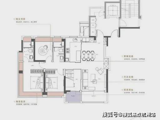 核心亮点 :三开间朝南,面宽超 10 米,全明通透;主卧套房设计,带独立衣帽间 + 干湿分离独卫,私密性与舒适度兼具;双卫全明,避免早高峰争抢;南北通透,客厅宽景阳台 + 卧室飘窗,视野开阔,空间尺度奢阔。