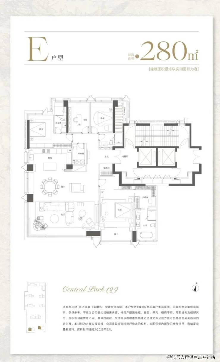 280㎡四房:边厅设计,大横厅尺度双向采光,可俯瞰中央庭院与大宁公园
