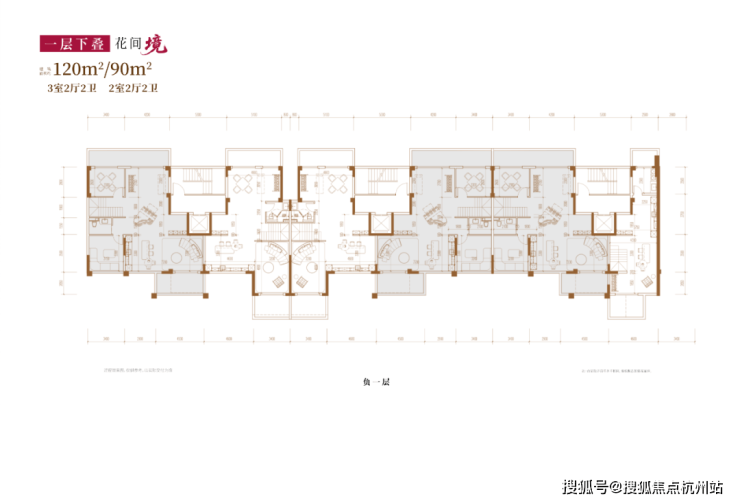 建面约120㎡3房2厅2卫/90㎡2房2厅2卫(一层下叠):