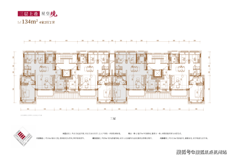 建面约134㎡4房2厅2卫(三层上叠):