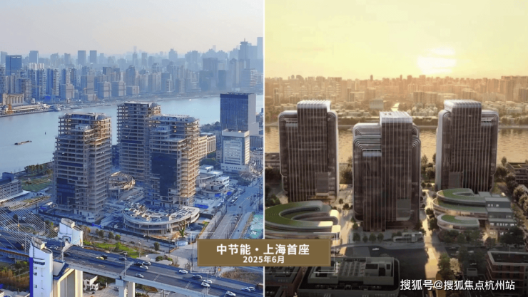 中节能上海首座、美团上海科技中心/杨浦滨江创智中心、哔哩哔哩新时代产业园(施工进度实景-未来效果图)