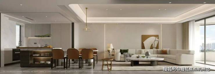 会客空间约有50平,餐客厅一体化足足有近百平,尺度感超强。