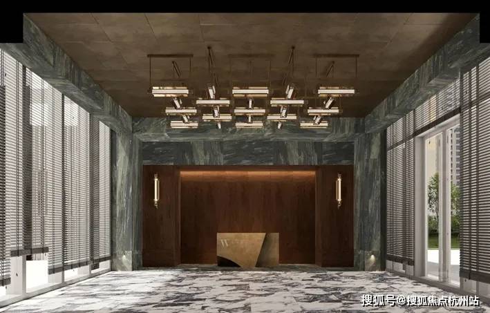 龙盛荟馆的接待处设计:空间讲究对称性、秩序感,暗绿纹哑光、温润的石材+仿铜金属板,调性和仪式感极佳,家具的选品又富有居家轻松氛围,有种俱乐部的感觉!