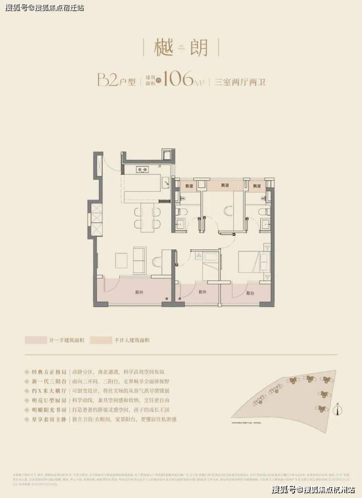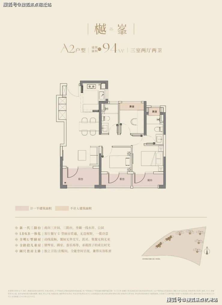 大华望樾建面约94㎡高层户型居然做到了三阳台的配置,远远超过新规标准。