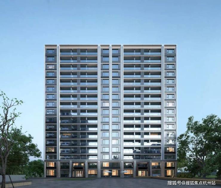 作为板块首个新规代宅,项目立面以铝板、石材与大面积玻璃为主,少量真石漆点缀,呈现出层层叠合的“玻璃盒子”形态。
