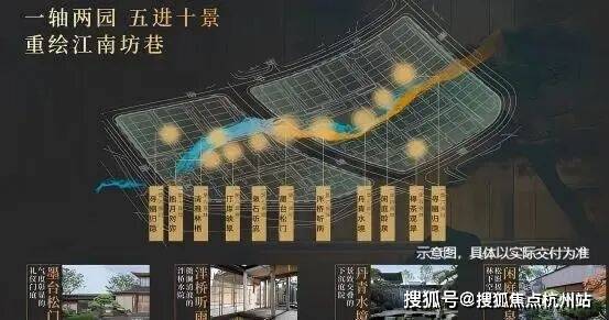 园林设计上依据“一轴两园 五进十景”规划,以豫园造景手法为基础,提取楼阁、折桥、墨池等中式元素,构建立体山水,重绘江南坊巷。
