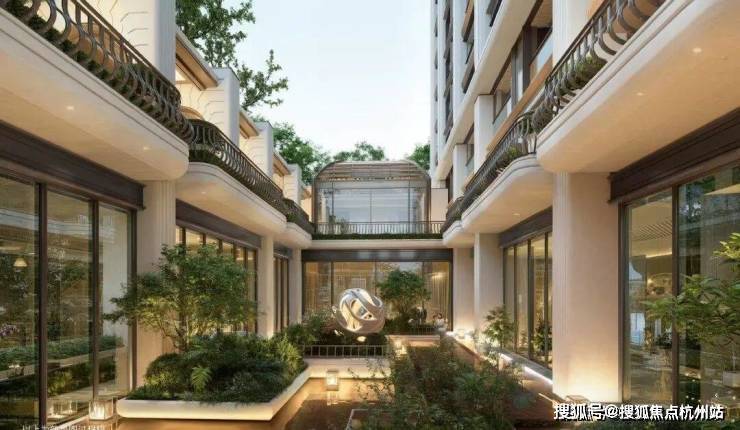 穿过社区大堂,是一片绿意盎然的下沉庭院,围绕下沉庭院设置一步观景露台,将花园生活引入私密领域,营造出静谧的围合感!
