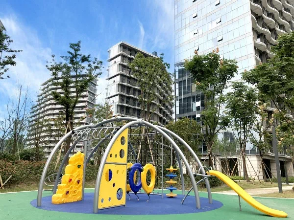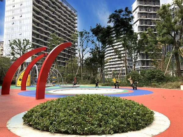 小朋友也能在园区中找到自己的定位。每一个幼儿都对沙子有着天然的情感,钱塘ONE将这种情感移植园区。沙坑、攀爬墙、摇椅、吊篮秋千等,将成为孩子们的乐园。