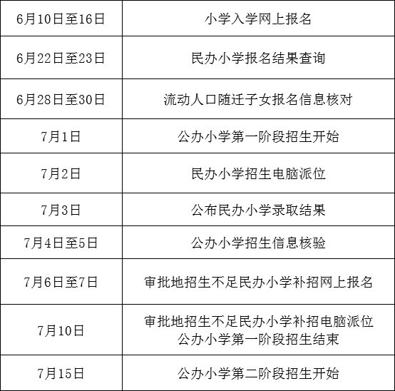 小学入学时间安排