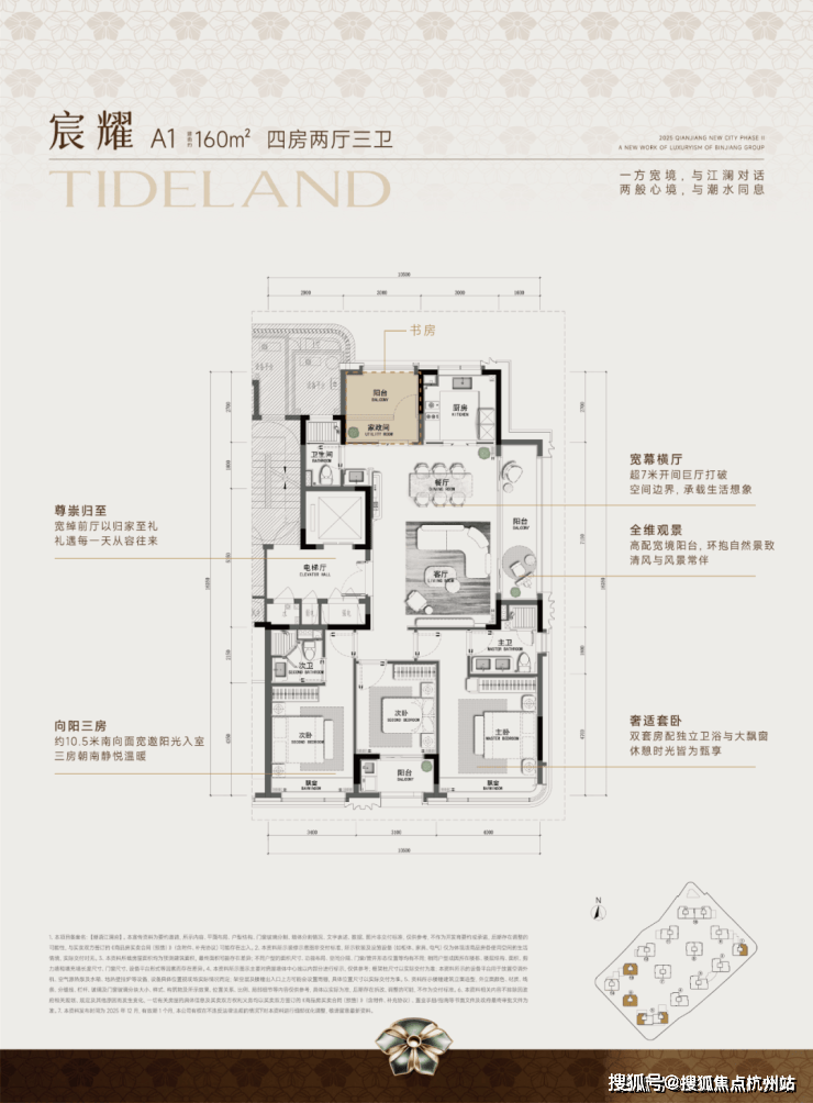 位于钱江新城二期的滨江潮语江澜府由14幢12-16F高层住宅组成,规划户型面积约160-226㎡,容积率2.5,占地面积33794㎡,合计440户,预计将于1月首开。