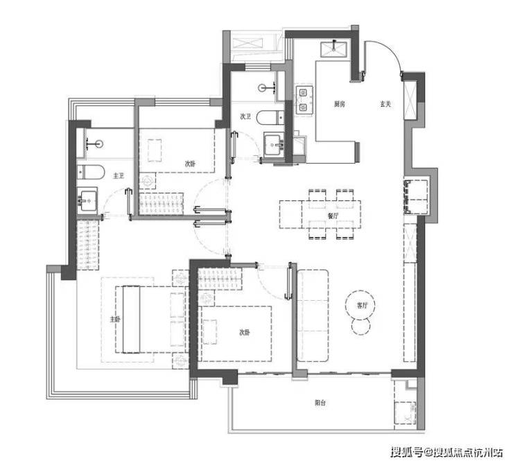 南向三开间格局,全明采光,满室清朗;一体化客餐厅与大面宽阳台联动,通透开阔,盛纳更多幸福生活场景;