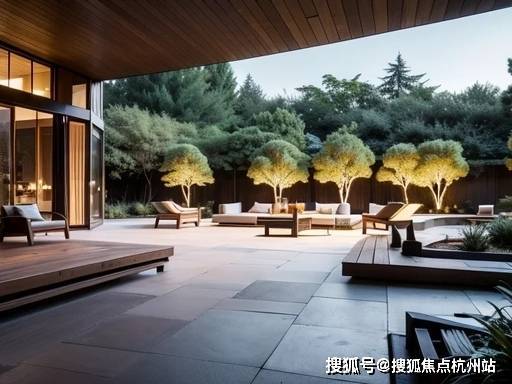 庭院中遍布着睡莲,从这里往出去像一幅画,高低层次的叠水景观,超大型的原石,还有私密的谈话空间,舒适惬意。