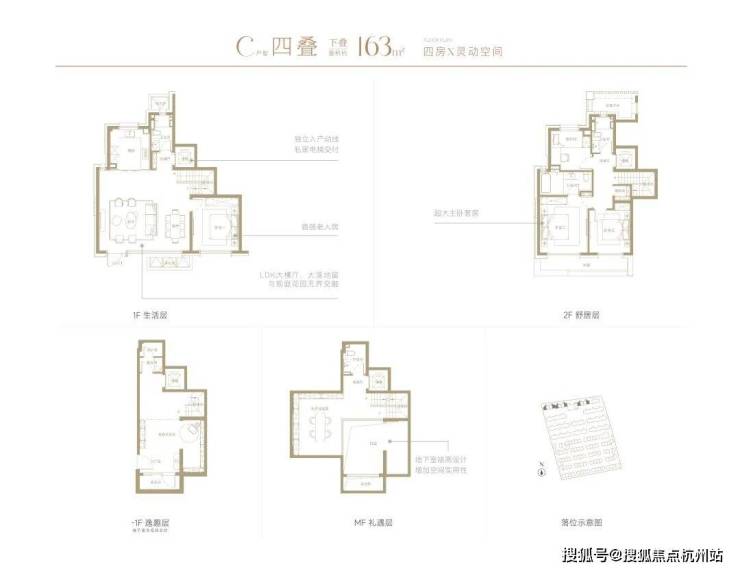 ▸3F客厅层南向超大面宽,打造LDKG无界空间,带来媲美约250㎡大平层的空间体验。