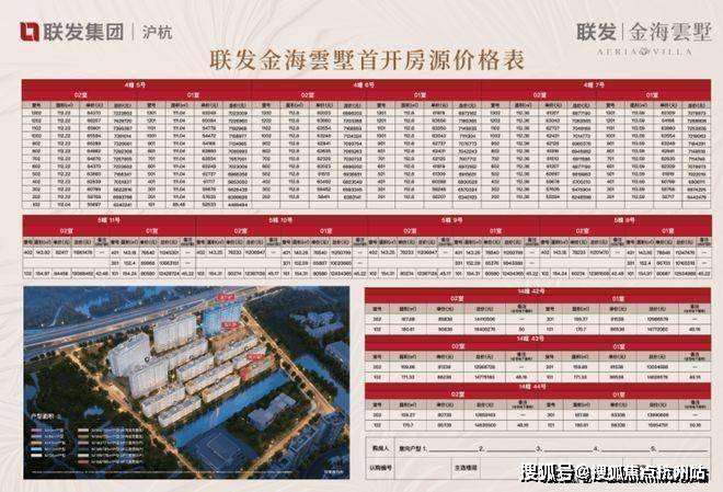联发金海雲墅售楼处电话:400-9966-224(售楼处最新电话)上海联发金海雲墅官方电话:400-9966-224✔(官方售楼处预约看房热线) 首批次预计11月中旬取证认购,首开4#、5#、14#, 包含建面约112㎡小高层、约144-155m两面宽叠墅、约159-181m三面宽叠墅,共计106套!