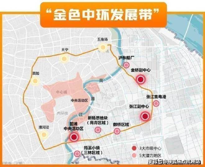 其中,金桥副中心与前滩、张江,组成了金色中环带上重要的三大城市中心。
