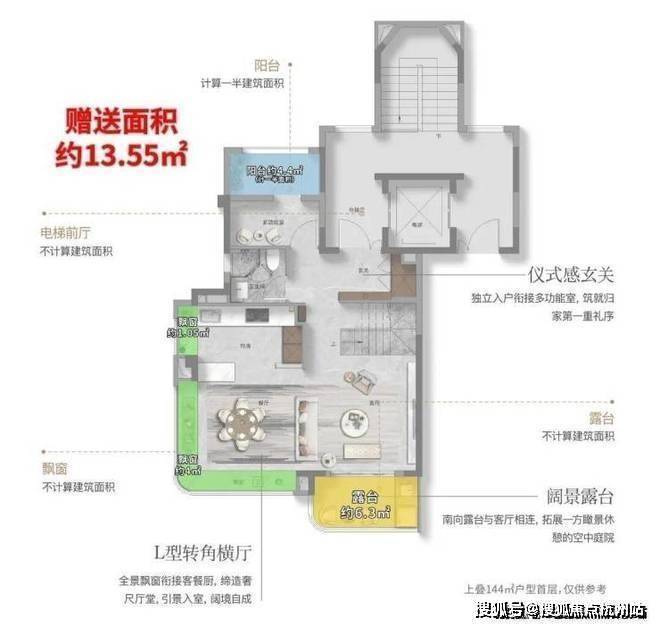 这个户型的附赠率,更高!实际可使用面积高达约234㎡,实得率超139%!