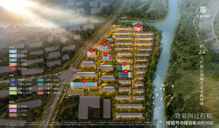 将推建面约105-140㎡6F墅质洋房、161-190㎡4F叠拼墅邸、200-290㎡3F滨水联排