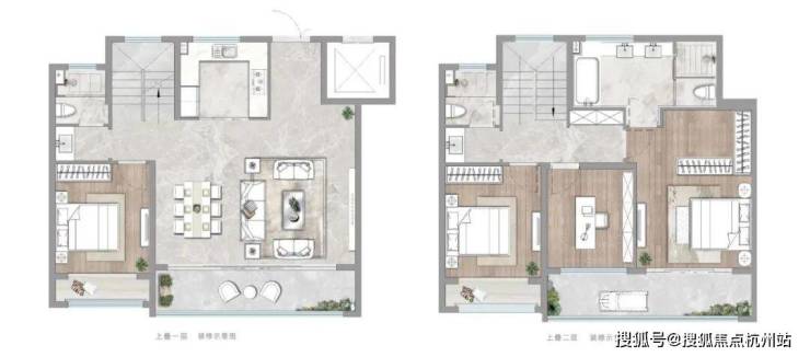 下叠户型约180㎡,通常带有40-100㎡的庭院。这类产品在当前的房地产市场中比较稀缺,能满足对生活空间有更高要求的家庭。