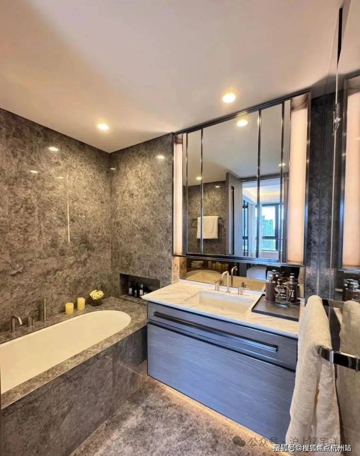 外立面通过石材、铝板及真石漆相结合呈现 十足的未来感。在有限的地块内,建筑大师及设计团队反复研究建筑方案,最终巧妙的将江景与纯现代外立面相融合,呈现 大露台环幕景观视野,使居住者能够拥享临岸滨江风景。