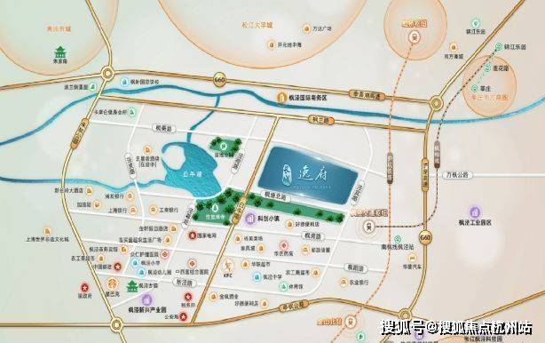 商业方面 ,项目南面约500米处有枫湾路菜市场及盒马超市;南面约800米处有肯德基、联华超市、农⼯商超市等配套。项目旁边在建的五星级劲霸枫泾酒店,这将是金山第一个五星级酒店。