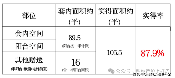 可以看出,对比市面上常规产品约75-78%的得房率,就算加上飘窗。实得率在80%左右,但本项目的实得率却做到了惊人的88-92%,套内面积普遍比常规产品多10%!