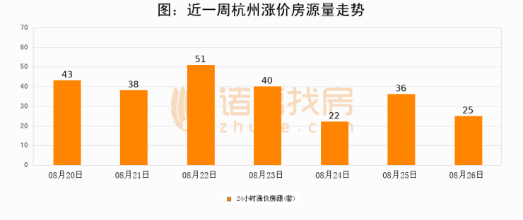 根据诸葛找房数据显示,杭州24小时涨价房源量为25套,较08月25日减少11套,环比下降30.6%。与此同时,涨价房源占比小幅回落,对于购房者来说是一个入市窗口期,购房者可抓住时机入市。
