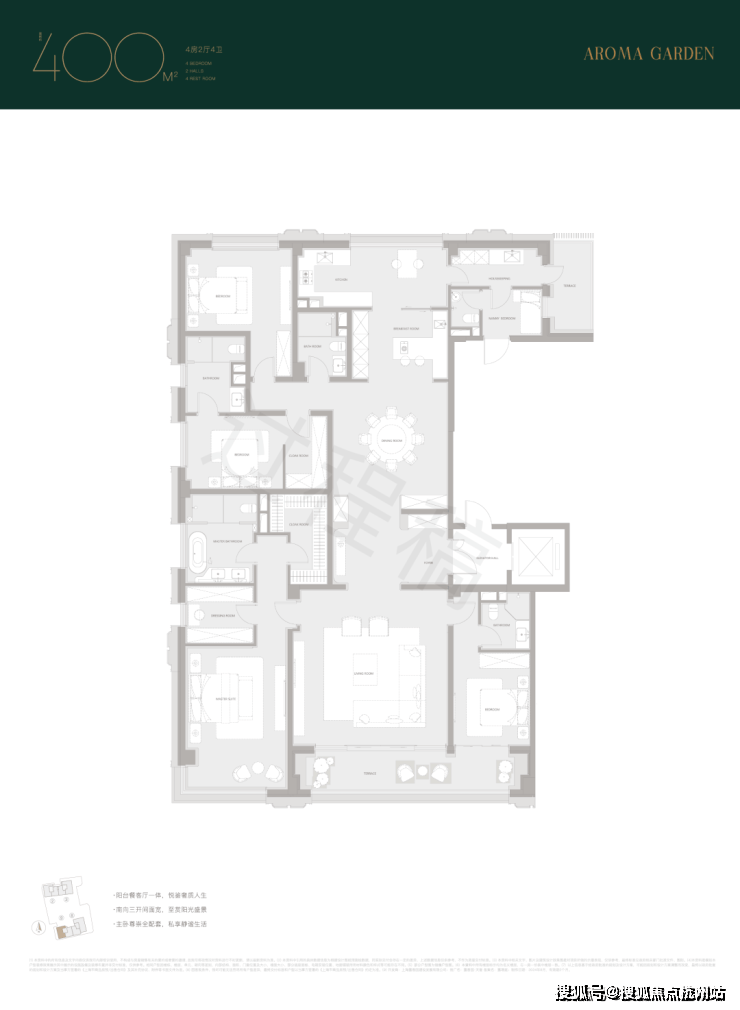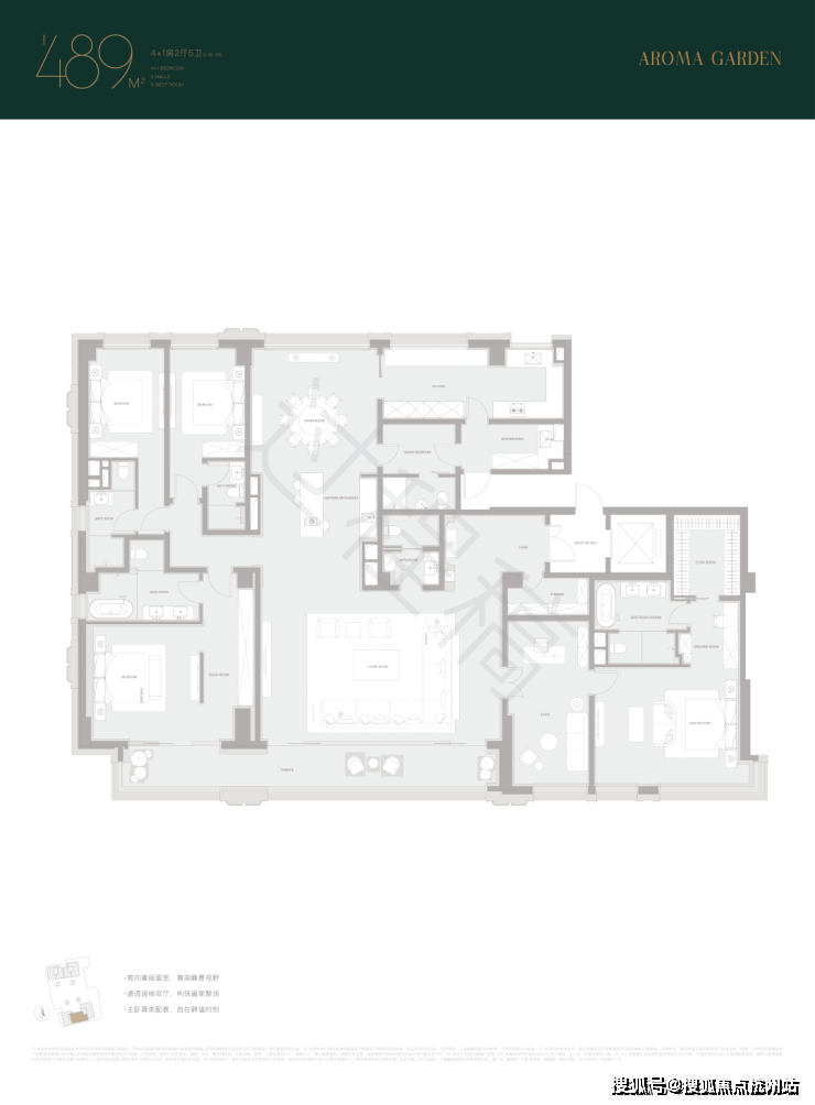 项目推出的建面约491㎡产品堪称市场极致户型,无论从尺度感还是生活度都做到满分的状态。
