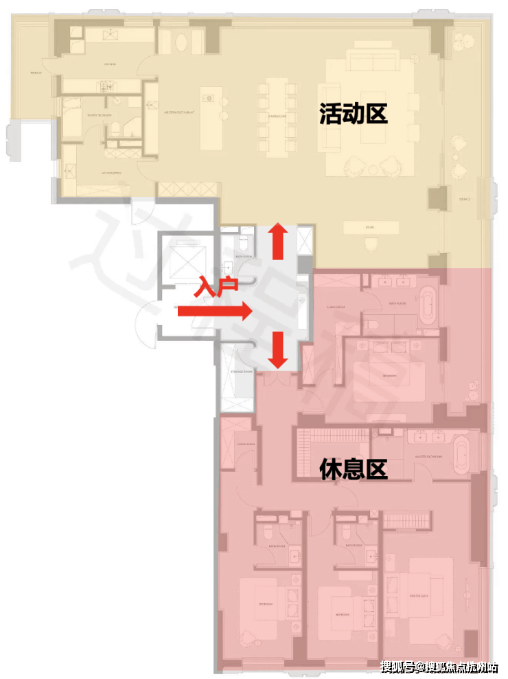 这是真正意义上的动静分离,因为自入户起就将活动区与休息区完全分开,互不干扰,保障家庭成员之间的私密感。