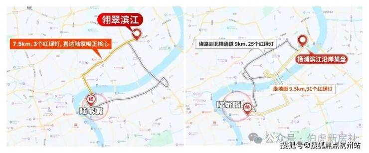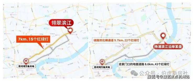其他滨江一线的项目,想要去往浦东、浦西核心商圈,都要绕到翎翠滨江所在的片区,才能驶入快速路网。