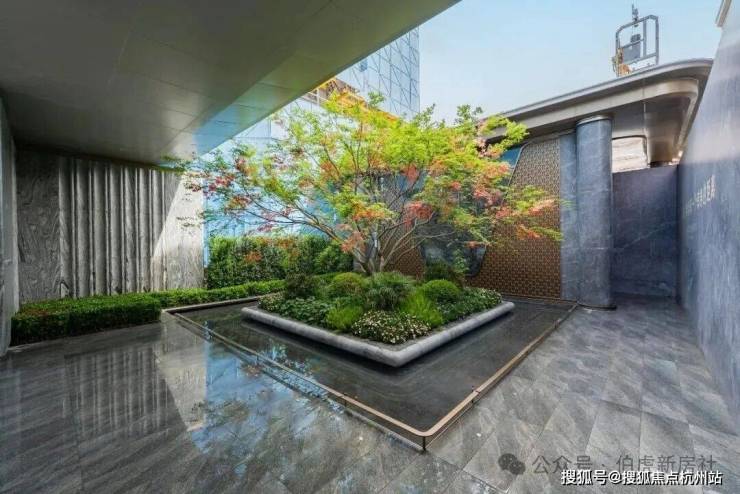 水景旁的特选造型鸡爪槭,由设计师辗转多地精心甄选而来,搭配莫兰迪色系的创新花境,打造出兼具艺术感与松弛感的无风雨归家洄游空间。