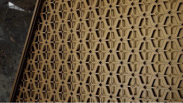 迎面而来的对景水幕景墙,以绿星花岗岩为主材,由上百块精心雕刻的立体菱形石材拼接而成,不仅视觉上极具艺术张力,更能让流水形成层次丰富的独特水纹。